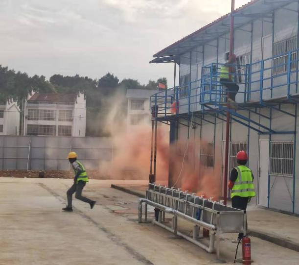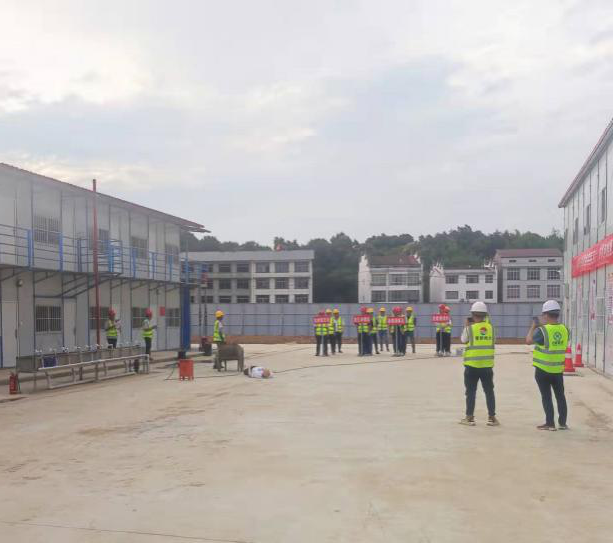 培訓(xùn)結(jié)束后,谷城一中項(xiàng)目安質(zhì)部部長(zhǎng)王海波組織項(xiàng)目施工人員模擬可能出現(xiàn)的緊急安全事故現(xiàn)場(chǎng),進(jìn)行應(yīng)急演練展示。